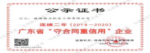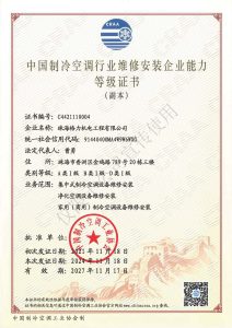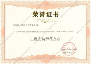 工程安装示范企业 中国制冷空调行业维修安装企业能力等级证书 连续二年(2019-2020)广东省“守合同重信用企业”